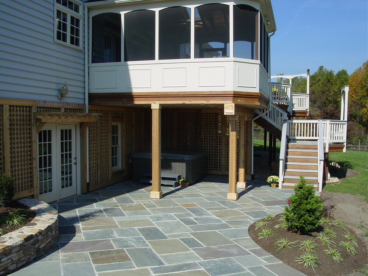 When a patio design is carefully crafted to suit your needs and work cohesively within the landscape, it very often becomes your family’s favorite place to gather. For over 20 years, Budding Branch Landscape & Design has designed and built some of the finest patios in Howard County, Maryland and the surrounding areas, including Baltimore, Carroll, Frederick and Montgomery counties. From elaborate, multi-level patios constructed with natural stone, to a simple, economical space for meals and entertaining, we can create the perfect patio for your outdoor space. In addition to patio design and construction, we offer stonework and hardscape construction for a full scope of landscape elements to complement a patio space such as retaining and sitting walls, pergolas, outdoor cooking areas and walkways.